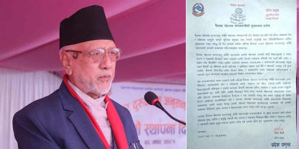 ‘पैगम्बर मोहम्मद सल्लल्लाहु अलैहि वसल्लमले देखाएको सहिष्णुता र दयाको मार्गले हाम्रो जीवनलाई सकारात्मक रूपमा अगाडि बढाउँछ, समाजमा मेलमिलाप र एकताको भावना विकास गर्छ,’ प्रदेश प्रमुख मियाँले जारी गरेको शुभकामना सन्देशमा उल्लेख गरिएको छ।