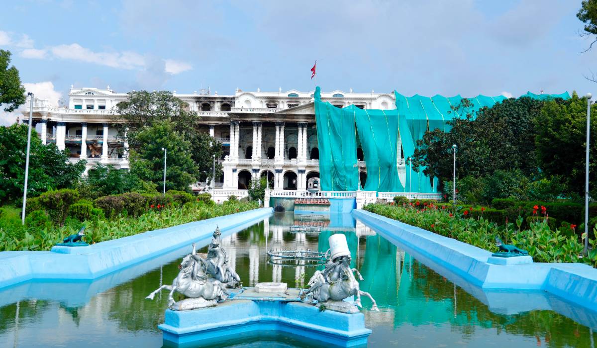 काठमाडौं । जेनजी आन्दोलनको क्रममा आगोले जलेर क्षति पुगेको सिंहदरबार मर्मत गर्नका लागि त्रिपालले छोपिएको छ । क्षतिग्रस्त सिंहदबार