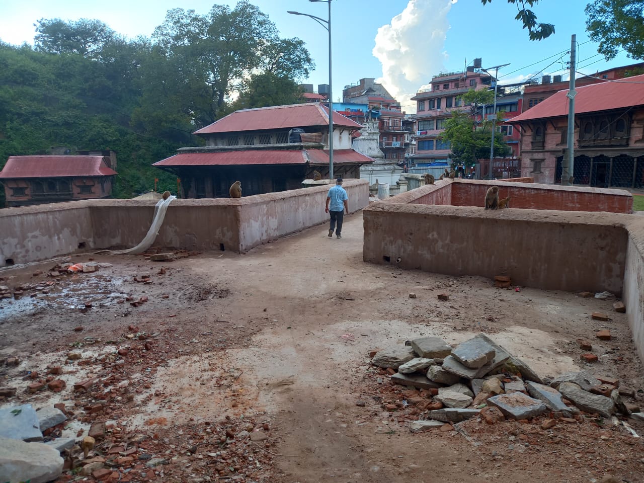 काठमाडौं महानगरपालिकाले ठेक्का गरी पुनःनिर्माणका लागि भत्काइएको सात महिना बितिसक्दा पनि पुलको काम अघि नबढेपछि त्यसबेला आवतजावतमा समस्या भएको थियो । विश्वसम्पदा क्षेत्रमा निर्माण गर्दा अपनाउनुपर्ने मापदण्डविपरीत पुल पुनःनिर्माण सुरु गरेपछि पुरातत्व विभागले पुरानै स्वरुपमा बनाउनुपर्ने भन्दै रोकेको थियो ।