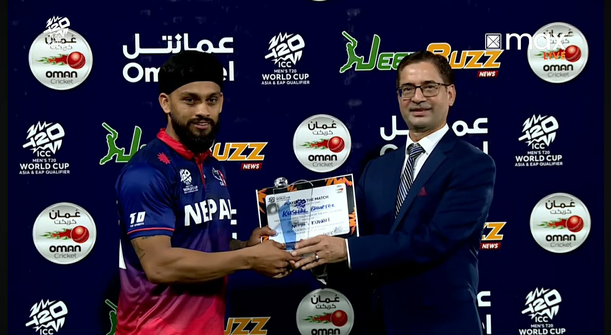 नेपाललाई जित दिलाउन महत्त्वपूर्ण भूमिका खेलेका कुशल प्लेयर अफ द म्याछ बनेका हुन् । नेपाललाई ५८ रनले जित निकाल्न उनले बलिङ, ब्याटिङ र फिल्डिङ सबैमा महत्त्वपूर्ण योगदान दिए ।