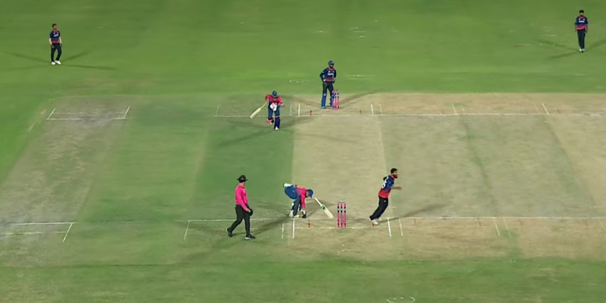 पाचौं बल यूएईका लागि दुर्भाग्य बन्यो । हेदर अलि एक रनका लागि दौडिएपछि दुई रन लिने क्रममा उनको हातबाट ब्याट खस्यो । ब्याट नटिपिकन उनले हातले नै बाउन्ड्रीमा छुने प्रयास गरे र अर्को रनका लागि दौडिए । तर, उनको औंलाले बाउन्ड्री छोएको थिएन । उनी अर्को इन्डमा पनि पुग्न सकेनन् र रनआउट भए । औंलो बाउन्ड्रीमा नछोएकाले गर्दा एक रन पनि काउन्ट भएन । यदि यो रन काउन्ट भएको भए सायद खेल बराबरी हुन सक्थ्यो ।