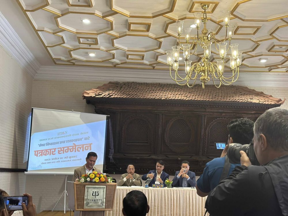 काठमाडौं । स्वतन्त्र ऊर्जा उत्पादकहरूको संस्था नेपाल (इप्पान) का अध्यक्ष गणेश कार्कीले जलविधुत आयोजनाहरूमा निशुल्क शेयर माग गर्न थालिएको जानकारी गराएका छन् । बुधबार स्वतन्त्र ऊर्जा उत्पादकहरूको संस्था नेपाल (इप्पान)को पत्रकार सम्मेलनमा बोल्दै अध्यक्ष कार्कीले यस्तो बताएका हुन् ।