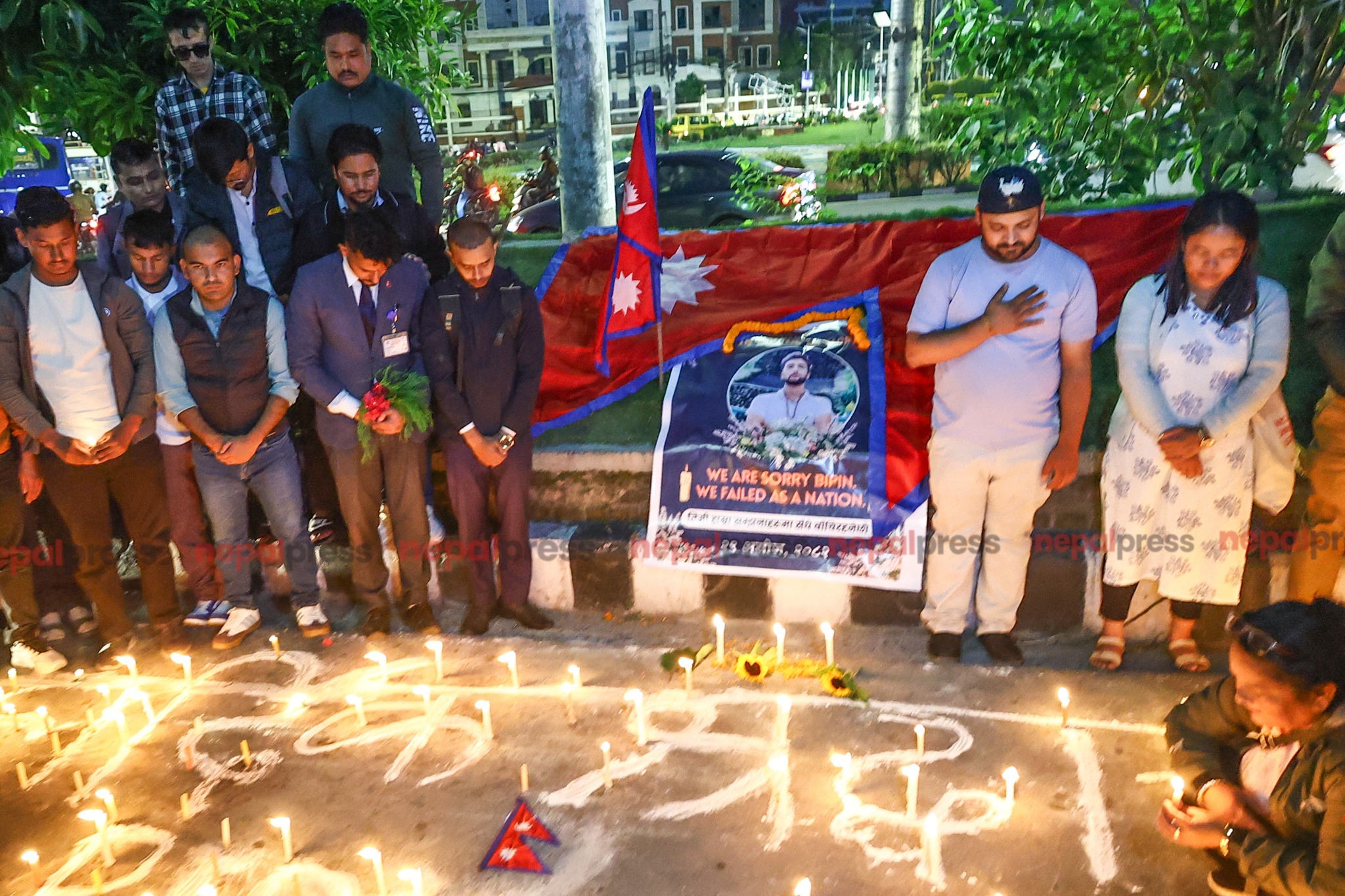 काठमाडौं । गाजामा मारिएका नेपाली विद्यार्थी विपिन जोशीको सम्झनामा बुधबार साँझ माइतीघर मण्डलामा दीप प्रज्वलन गरिएको छ ।