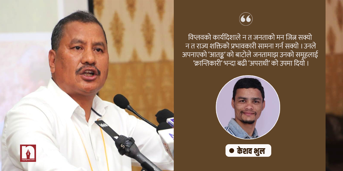 यसले विप्लवको नेतृत्व क्षमता, रणनीतिक कौशल र आफ्ना कार्यकर्ताको जीवनप्रति उनको संवेदनशीलतामाथि गम्भीर प्रश्न खडा गर्यो । के यो साँच्चै क्रान्तिको तयारी थियो वा नेतृत्वको अपरिपक्वता र हठका कारण आफ्ना कार्यकर्तालाई बलि चढाउने एक दुखद प्रयोग मात्र ? विप्लवको यो ‘क्रान्ति’ ले हजारौँ कार्यकर्ताको भविष्य अन्योलमा पार्यो, कैयौँको ज्यान गयो र देशमा अनावश्यक त्रास मात्र फैलियो । उनले वैकल्पिक राजनीतिक मार्ग र जनमत सिर्जना गर्नेतर्फ कुनै ठोस पहल गर्न सकेनन् ।