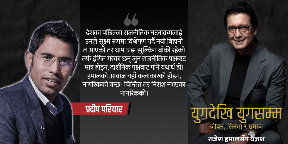 उनी केवल पर्दाका नायक होइनन्, एउटा पुस्ताको भावनात्मक पहिचान हुन्। दशकौँ बितिसक्दा पनि, नेपाली जनमानसमा राजेश हमालको प्रभाव कम भएको छैन; बरु उनी अझ परिपक्व, विचारशील र आत्मस्वीकृत बनेका छन्। अहिले उनी आफ्नै जीवनका अध्यायहरू पल्टाउँदै, आत्मकथनका स्वरमा प्रस्तुत भएका छन्- पुस्तक “युगदेखि युगसम्म” मार्फत, जसलाई लेखक यज्ञश ले तीन वर्षको धैर्य, शोध र आत्मीय अन्तर्वार्ताबाट तयार पारेका छन्।