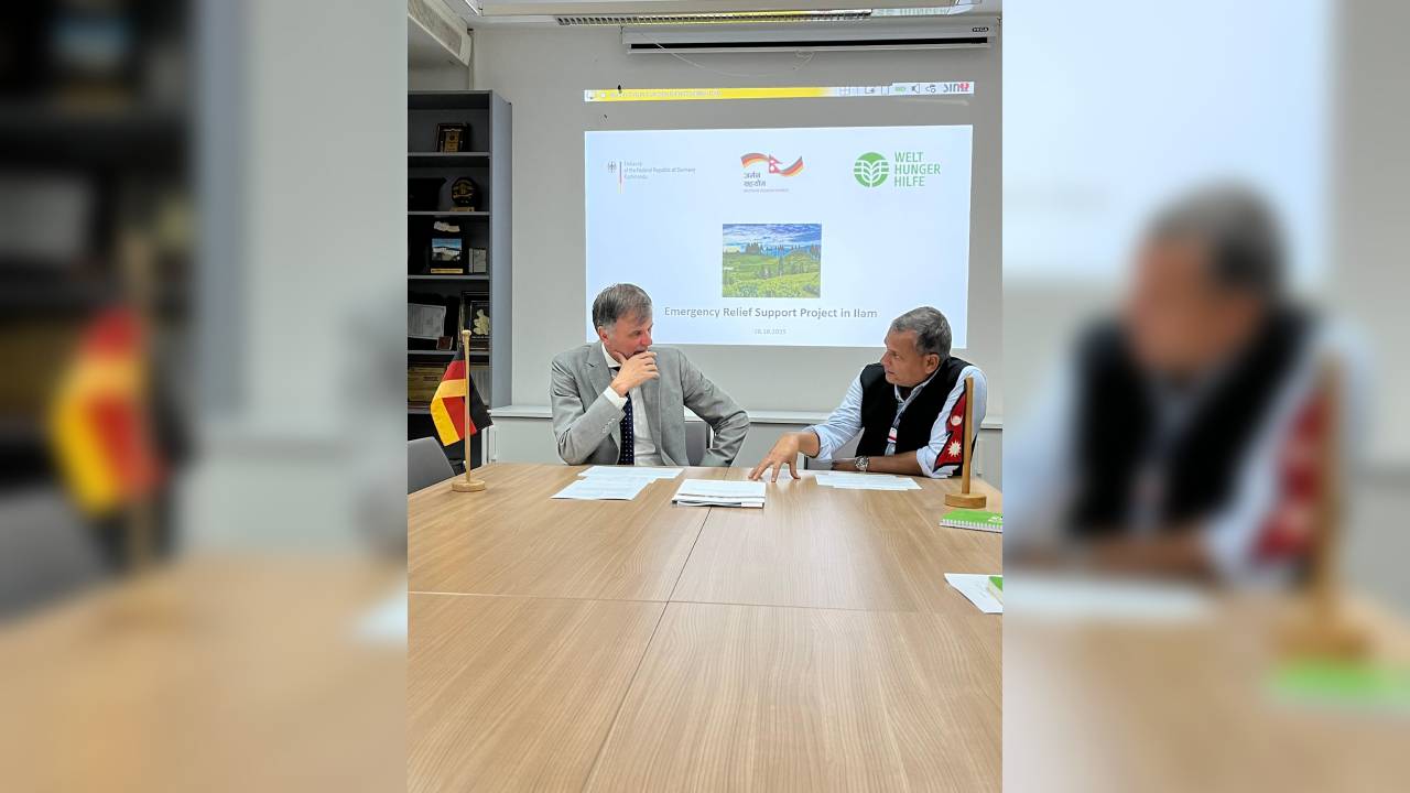 नेपालका लागि जर्मनीका राजदूत उदो भोल्जले जर्मनीको गैरसरकारी संस्था डोइचे वेल्टहुङगेहिल्फमार्फत सहयोग सामग्री परिचालन गर्न उक्त संस्थाका देशीय निर्देशक सकेब नवीसँग मङ्गलबार सम्झौता गर्नुभएको यहाँस्थित जर्मनीको राजदूतावासले जनाएको छ ।