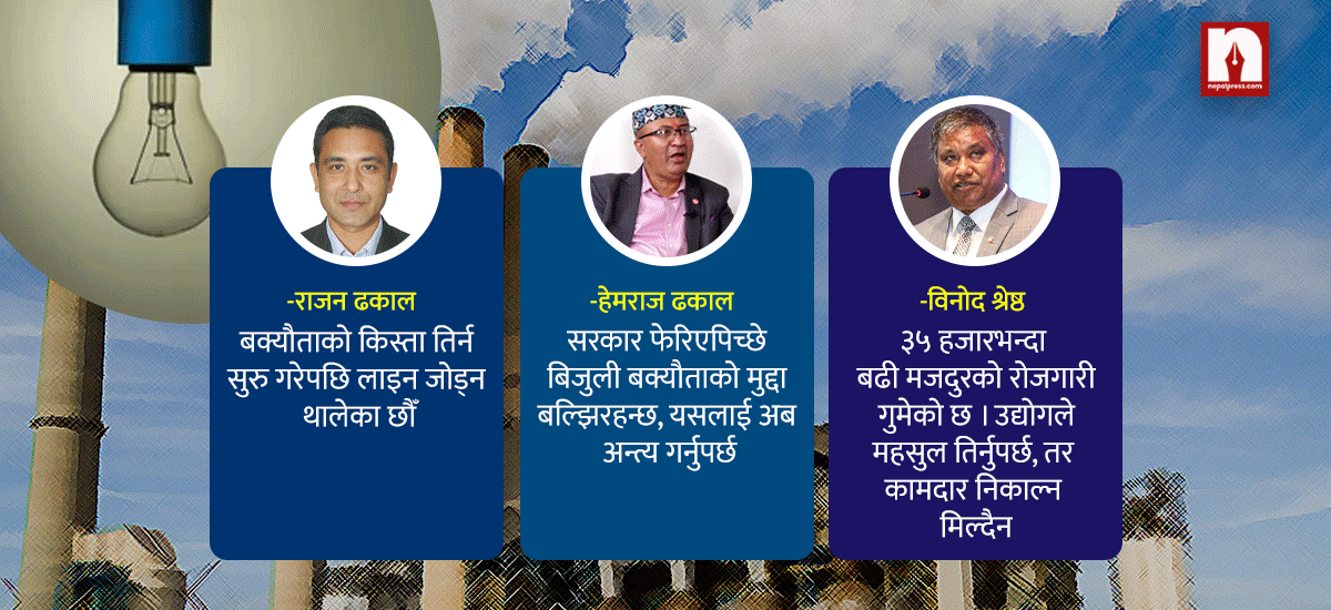 नेपाल विद्युत् प्राधिकरणले बक्यौता नतिर्ने २५ उद्योगको विद्युत् लाइन काटेसँगै यो विवादले उग्र रूप लिएको हो । प्राधिकरणको यस कदमले उद्योगहरूको उत्पादन बन्द भएको साथै हजारौं मजदुरको रोजगारी जोखिममा परेको भन्दै चिन्ता जनाउन थालिएको छ ।
