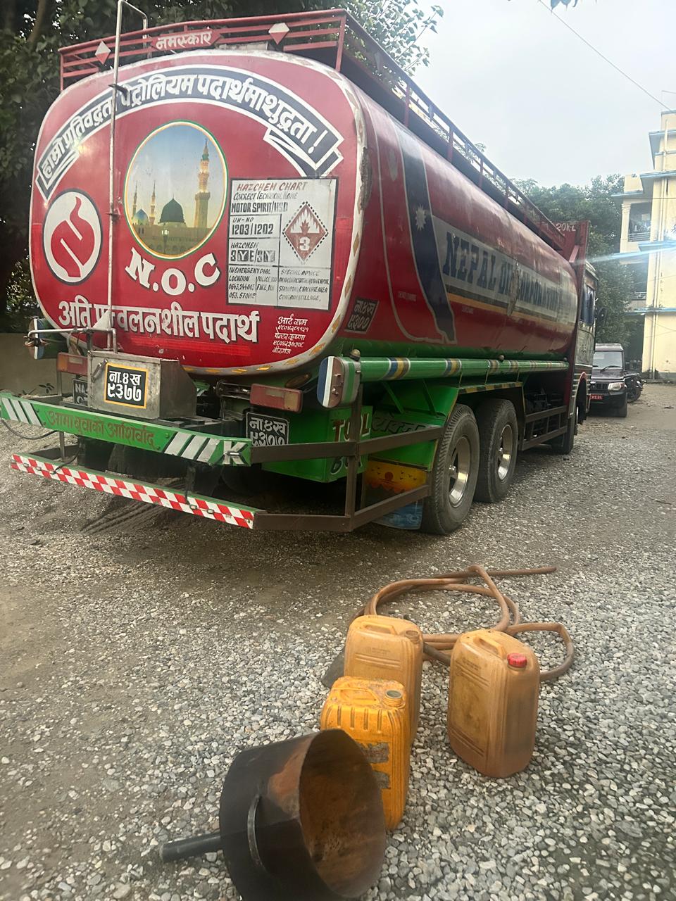 प्रहरी टोलीले ट्याङ्कर चालक र पेट्रोल पम्पमा काम गर्ने ३ जनासहित ४ जनालाई नियन्त्रणमा लिएर अनुसन्धान गरिरहेको डिएसपी पुष्कर बोगटीले बताए ।