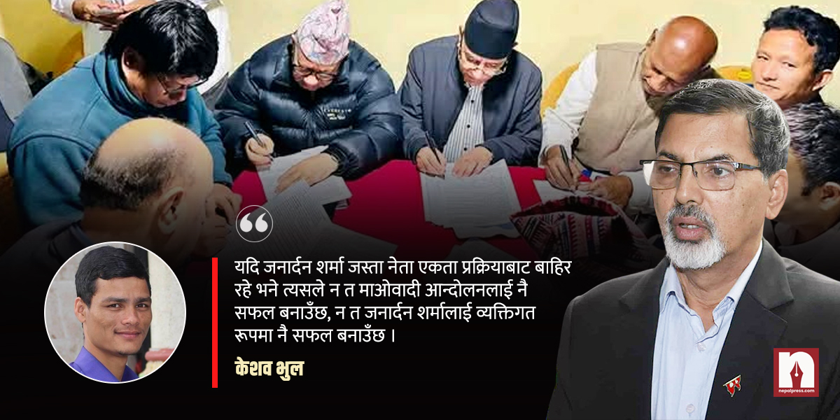 यदि जनार्दन शर्मा जस्ता नेता एकता प्रक्रियाबाट बाहिर रहे भने त्यसले न त माओवादी आन्दोलनलाई नै सफल बनाउँछ, न त जनार्दन शर्मालाई व्यक्तिगत रूपमा नै सफल बनाउँछ । यो एउटा गम्भीर मोड हो जहाँ सबैले दूरदर्शिता, त्याग र समर्पणका साथ काम गर्नुपर्छ ताकि कम्युनिष्ट आन्दोलनले नयाँ ऊर्जा प्राप्त गरोस्, देशमा राजनीतिक स्थायित्व कायम गरोस् र जनताको समृद्धिको आकांक्षालाई पूरा गर्न सकोस् ।