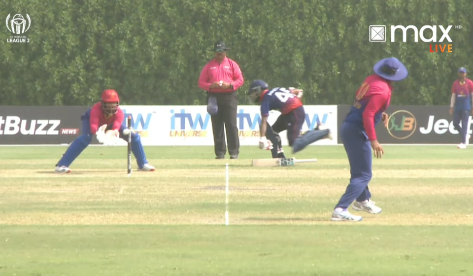 रन पूरा नगरिकन ब्याट खसेपछि दीपेन्द्रले शरीरको कुनै अंगले क्रिज छुनुपथ्र्यो । तर, उनी क्रिजमा जम्प गर्दा खुट्टा हावामा भएको बेला फिल्डरले स्टम्प उडाइदिए र अम्पायरले आउट दिए । यस्तो खालको आउट क्रिकेटमा दुर्लभ नै देख्न पाइन्छ ।