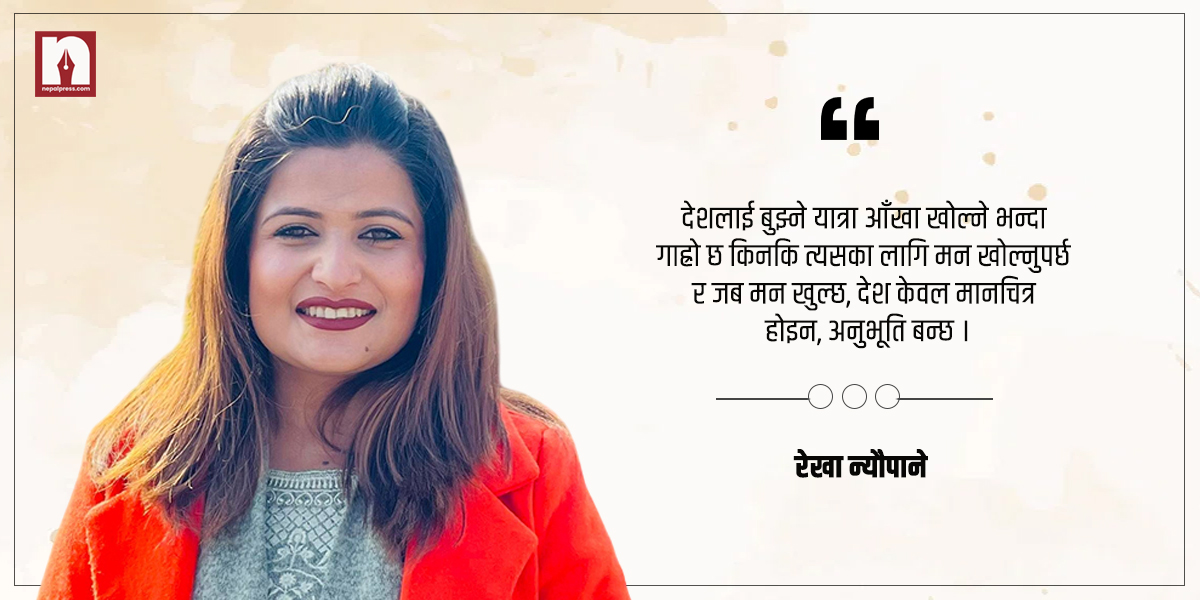 हामीले विकास देख्यौँ, तर महसुस गरेनौँ । हामीले अधिकार प्रयोग गर्यौँ, तर जिम्मेवारी आत्मसात् गरेनौँ । देशलाई बुझ्ने यात्रा आँखा खोल्ने भन्दा गाह्रो छ किनकि त्यसका लागि मन खोल्नुपर्छ र जब मन खुल्छ, देश केवल मानचित्र होइन, अनुभूति बन्छ ।