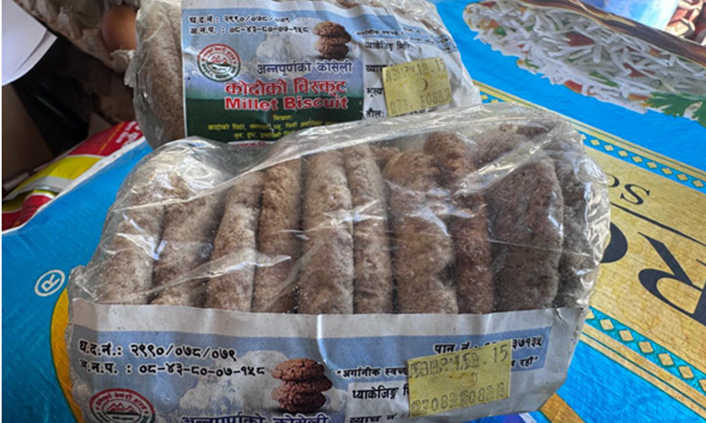 अन्नपूर्ण गाउँपालिका–६ पोखरेबगरको अन्नपूर्ण बेकरी हाउसका सञ्चालक कृष्ण खड्काले उपभोक्ताबाट माग आउन थालेपछि कोदोको बिस्कुट उत्पादन गर्न थालेका छन् । ‘पहिलेपहिले कोदोखेती गर्ने र यसका परिकार उपभोग गर्नेलाई गरिब भनेर हेप्ने चलन थियो,’ उनले भने, ‘स्वस्थकर र पोषिलो कोदोको महत्व बुझेपछि माग आउन थालेपछि मैले पनि बिस्कुट बनाएर बेच्न थालेको छु ।’