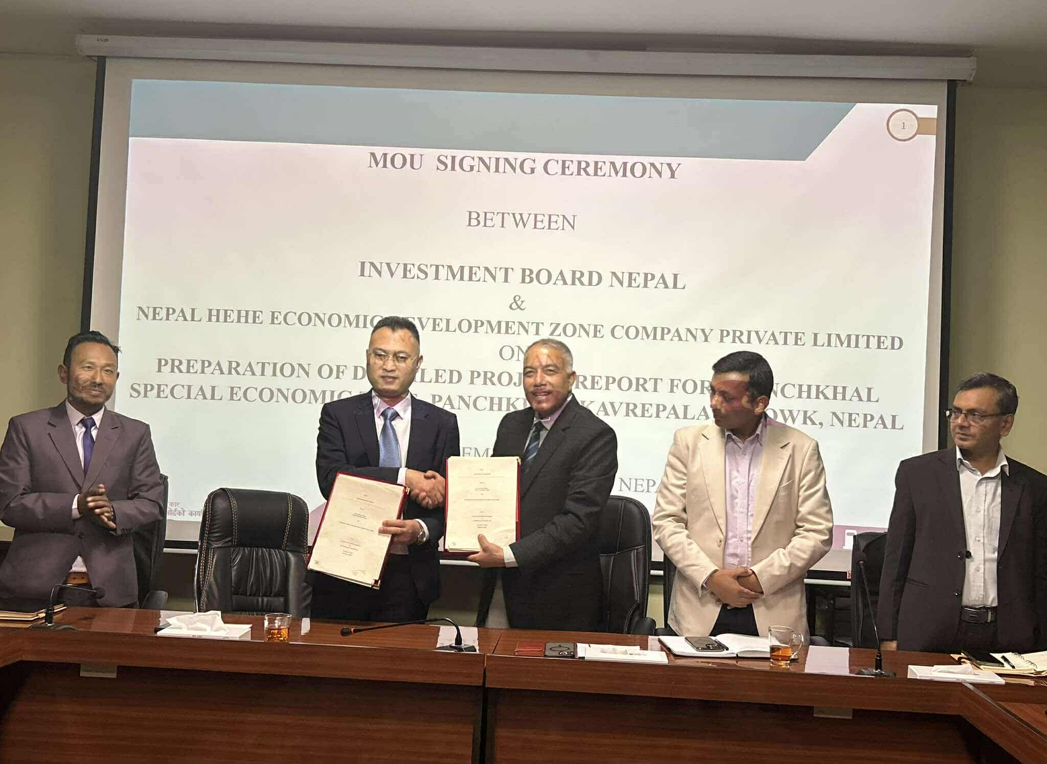काठमाडौं । नेपाल सरकार, लगानी बोर्ड र नेपाल हेहे इकोनोमिक डेभलपमेन्ट जोन कम्पनी लिमिटेडका बीच काभ्रेपलाञ्चोकको पाँचखालमा पाँचखाल विशेष आर्थिक क्षेत्र (सेज) को विस्तृत परियोजना प्रतिवेदन (डिपLआर) तयार गर्ने सम्बन्धमा महत्वपूर्ण समझदारी पत्रमा हस्ताक्षर भएको छ।
