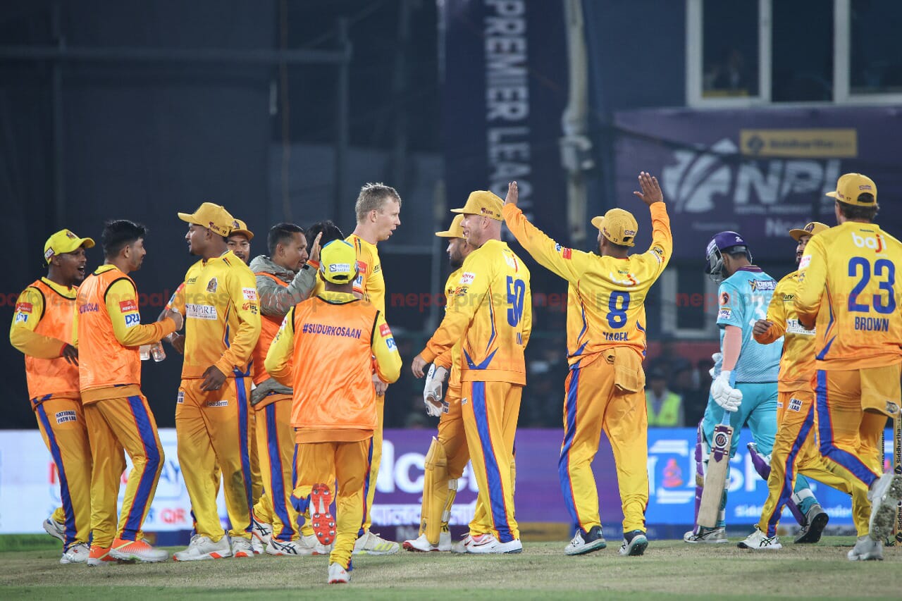 काठमाडौं । नेपाल प्रिमियर लिग (एनपिएल) सिजन–२ मा सुदूरपश्चिम रोयल्सले काठमाण्डु गोखार्जलाई २९ रनले पराजित गरेको छ । टीयु क्रिकेट मैदानमा सुदूरपश्चिमले दिएको १४८ रनको लक्ष्य पछ्याएको काठमाण्डु १६ ओभर ५ बलमा ११८ रनमा समेटियो ।