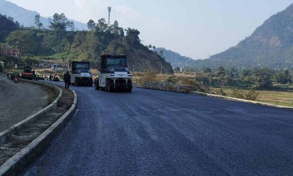 यस खण्डको ३८ दशमलव ८८ किमीमा हालसम्म ३७ दशमलव चार किमीमा एकतर्फी रूपमा पहिलो तहको कालोपत्र सकिएको छ । त्यसमध्ये २९ दशमलव ६१ किमी खण्डमा चार लेन र सात दशमलव ७९ किमीमा दुई लेन कालोपत्र सम्पन्न भएको छ ।