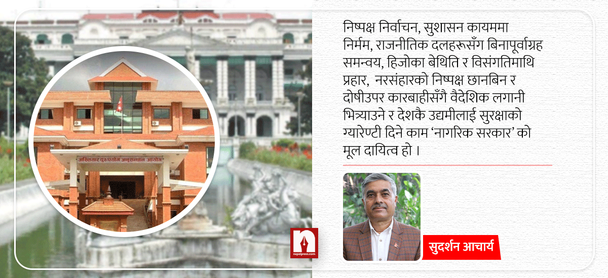 आजकै मितिमा सुशासन कायमका सन्दर्भमा अख्तियारबाहेक संविधानले दोस्रो निकायको कल्पनासम्म पनि नगरेकाले आयोगलाई नै बलियो बनाएर यही आयोगमार्फत नै सुशासन कायम राख्न लाग्नु नै ‘नागरिक सरकार’ को दायित्व हो । जेन–जी विद्रोहको भावना पनि यही हो ।