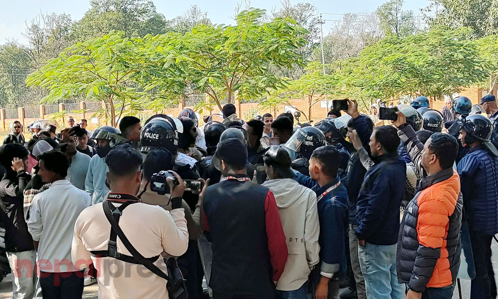 जिल्ला प्रहरी कार्यालय सुर्खेतका डीएसपी मोहनजंग बुढथापाका अनुसार कार्यक्रम स्थल आसपास केही युवाहरूले प्लेकार्ड बोकेर शान्तिपूर्ण तरिकाले विरोध जनाएका हुन् ।