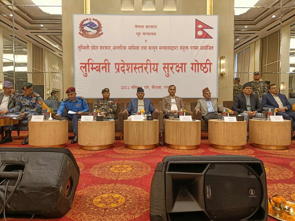 सुरक्षा गोष्ठीमा गृहसचिव रामेश्वर दंगाल, नेपाल प्रहरीका प्रहरी महानिरीक्षक दानबहादुर कार्की, सशस्त्र प्रहरी प्रमुख राजु अर्याल, लुम्बिनी प्रदेशका मुख्यमन्त्री चेतनारायण आचार्य र १२ जिल्लाका प्रमुख जिल्ला अधिकारी तथा जिल्ला प्रहरी प्रमुखहरू सहभागी गोष्ठीमा लुम्बिनी प्रदेशको सुरक्षा चुनौती संश्लेषण गर्ने, त्यसका लागि आवश्यक रणनीति तय गर्ने निर्वाचनका लागि आवश्यक पार्ने गरी सुरक्षा तयारी गर्नेछ।
