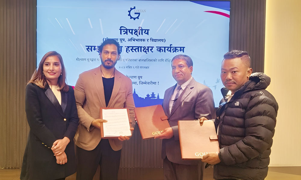 ग्रुपले मंगलबार विद्यालय र अभिभावबीच त्रिपक्षीय सम्झौता गरेको छ । सम्झौतामा बालबालिकाको कक्षा १२ सम्म अध्ययनका लागि आवश्यक खर्च बेहोरिने उल्लेख छ । शैक्षिकवृत्तिका लागि घोषित आर्थिक प्याकेजको सीमाभित्र रहेर विद्यार्थीको अध्ययनमा खर्च गरिने गोल्याण ग्रुपका कर्पोरेट अफेयर्स, पब्लिक रिलेसन एण्ड कम्युनिकेशन्स प्रमुख ज्योति गैह्रेले जानकारी दिइन् । बालबालिका अध्ययनरत विद्यालयका प्रधानाध्यापक र बालबालिकाका संरक्षक (अभिभावक) सँग त्रीपक्षीय हस्ताक्षर गरेको प्रमुख गैह्रेले बताइन् ।