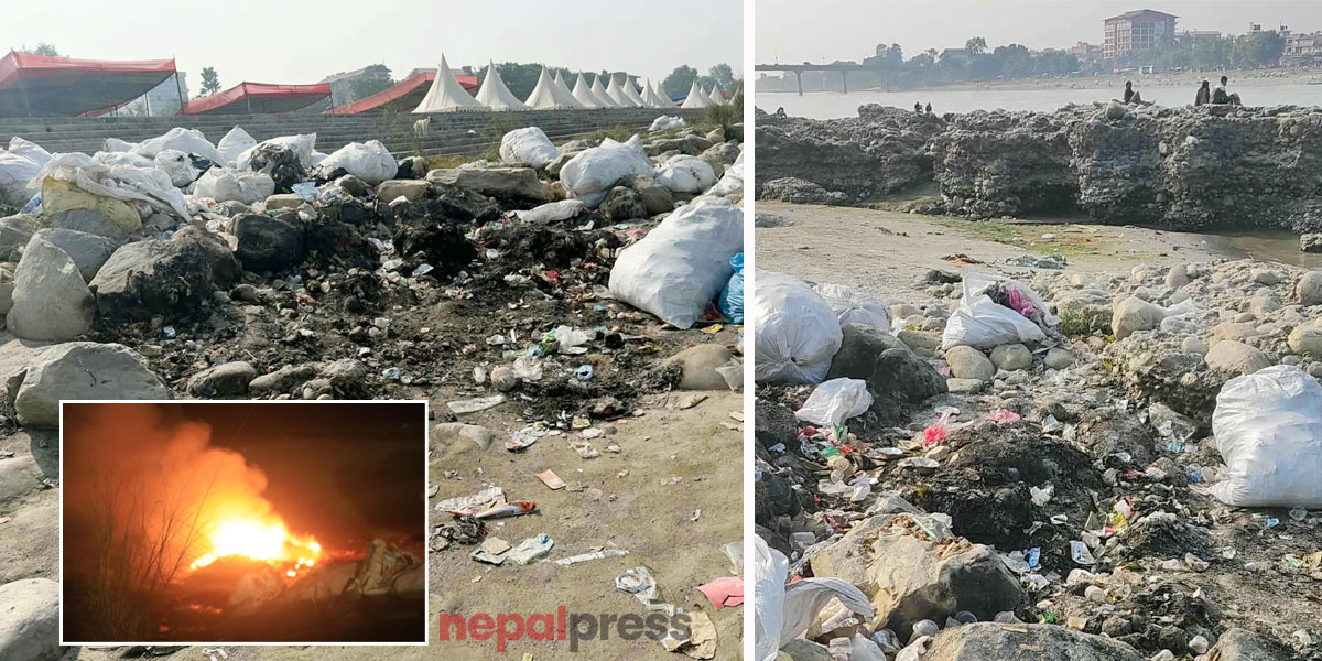 चितवन । जिल्ला खेलकुद विकास समिति चितवनको आयोजनामा भएको वृहत खेलकुद तथा व्यापारिक महोत्सव–२०८२ का क्रममा २० दिनसम्म थुप्रेको फोहोर नारायणी नदी किनारामा लगेर जलाइएको पाइएकाे छ । भरतपुर महानगरपालिकाको स्वीकृतिमा आयोजित महोत्सवले प्राकृतिक स्रोतमाथि प्रदूषण गरेपछि वातावरण क्षेत्रमा क्रियाशील व्यक्तिले प्रश्न उठाएका छन् ।