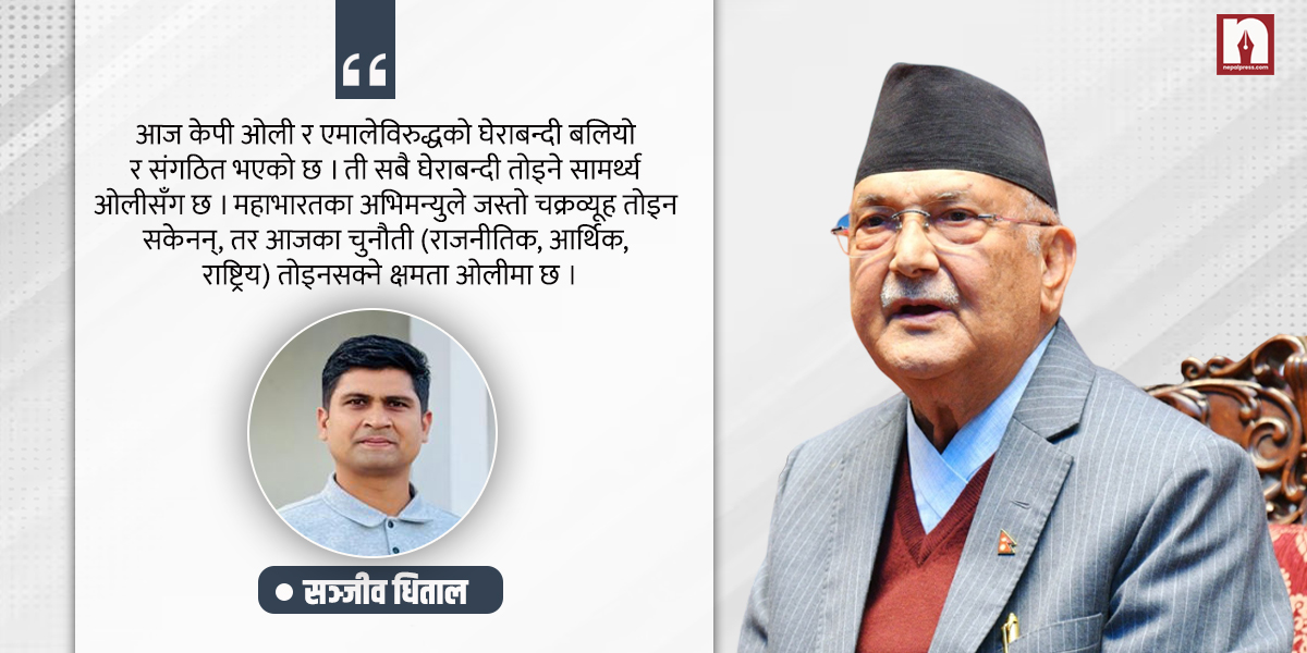 आज केपी ओली र एमालेविरुद्धको घेराबन्दी बलियो र सङ्गठित भएको छ। ती सबै घेराबन्दी तोड्ने सामर्थ्य ओलीसँग छ। महाभारतका अभिमन्युले जस्तो चक्रव्यूह तोड्न सकेनन्, तर आजका चुनौती (राजनीतिक, आर्थिक, राष्ट्रिय) तोड्नसक्ने क्षमता ओलीमा छ। ओली पार्टीगत सीमाभन्दा माथि उठेर राष्ट्रकै अभिभावक भएका छन्। ओली र एमालेविरुद्ध सबै शक्ति लाग्नुको मूल कारण यसको सुदृढ सङ्गठन, राष्ट्रवादी नीति, भ्रष्टाचारविरोधी प्रतिबद्धता र जनस्तरमा गहिरो पकड हो।