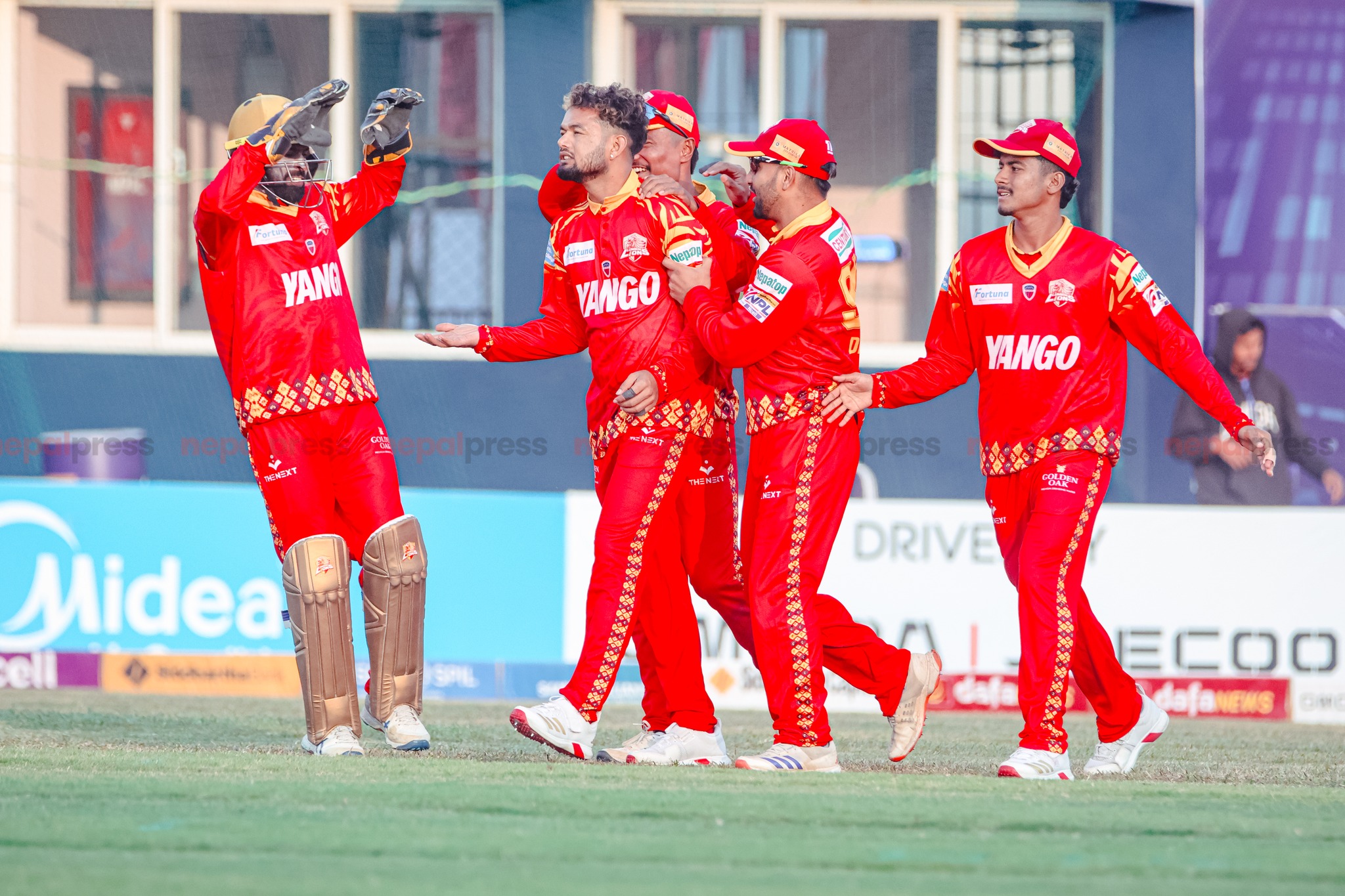 बलिङमा काठमाण्डुका सन्तोष यादवले दुई, सन्नी पटेल, शाहव आलम, कप्तान करण केसी र रसिद खानले एकएक विकेट लिए ।