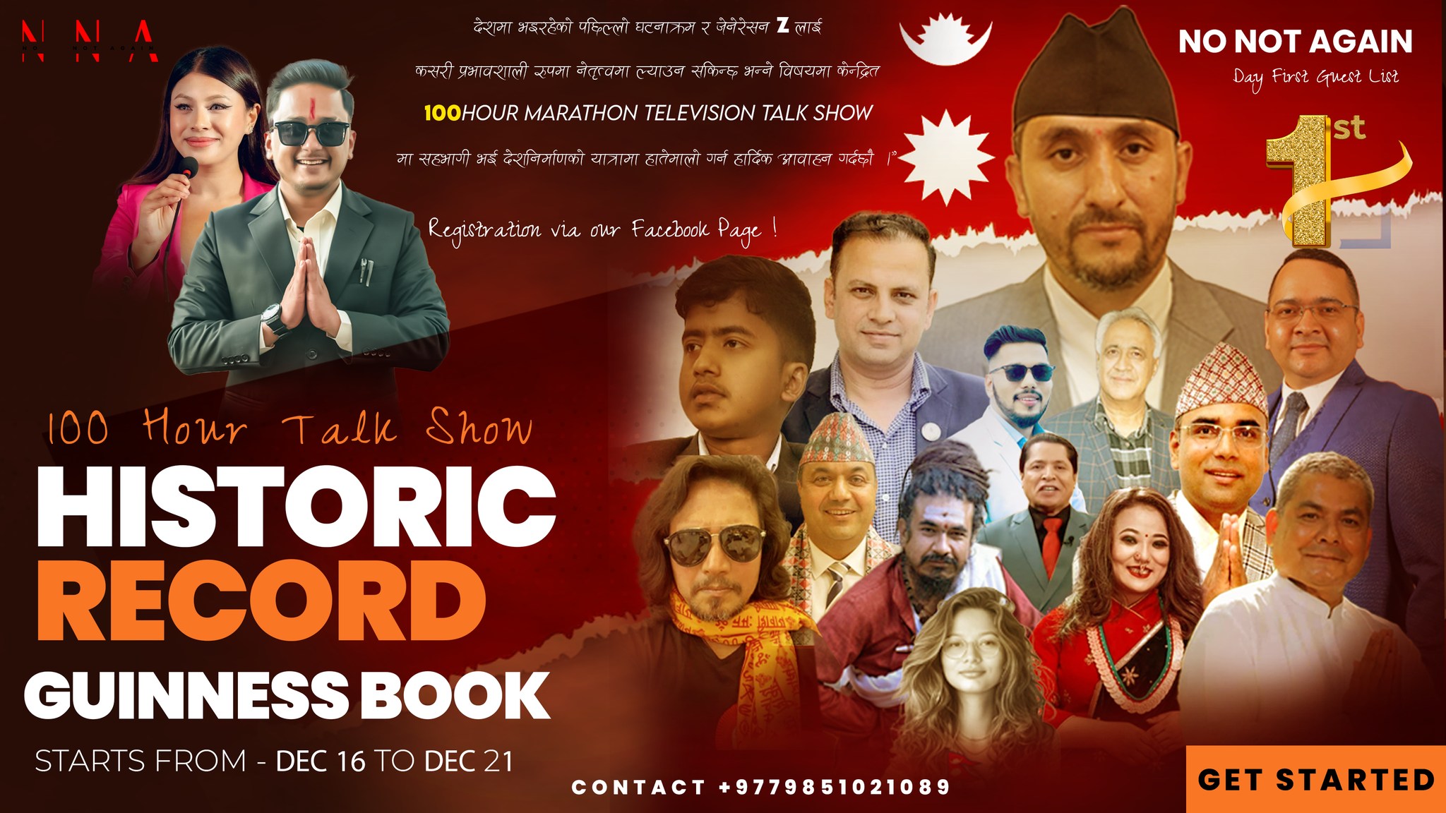 काठमाडौं । पत्रकार गौरव पौडेलको लगातार एक सय घण्टा अन्तर्वार्ता लिएर विश्व रेकर्ड बनाउने कार्यक्रम भोलिबाट सुरु हुने भएको छ ।