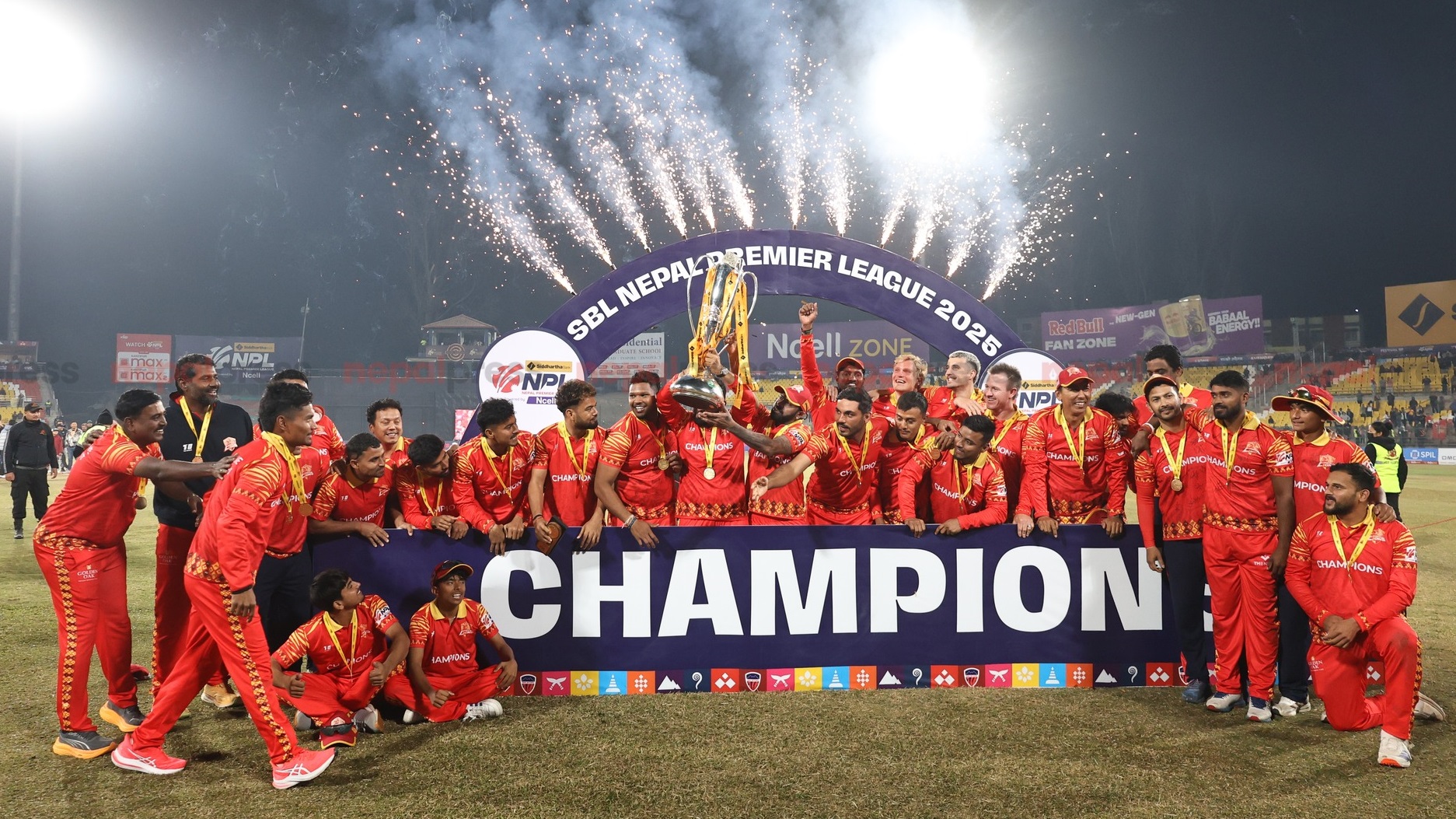 काठमाडौँ । नेपाली क्रिकेटको सर्वाधिक ठूलो महोत्सव नेपाल प्रिमियर लिग (एनपीएल) को दोस्रो संस्करण सम्पन्न भइसकेको छ । प्रतियोगिताको फाइनलमा सुदूरपश्चिम रोयल्सलाई हराउँदै लुम्बिनी लायन्स च्याम्पियन बन्यो ।