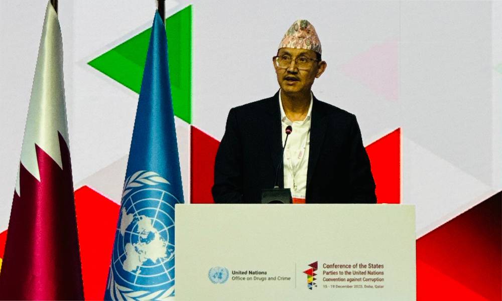 कतारको राजधानी दोहामा जारी संयुक्त राष्ट्रसङ्घीय भ्रष्टाचारविरुद्धको महासन्धि पक्षराष्ट्रहरूको ११औँ सम्मेलनमा नेपालले उक्त जानकारी दिएको हो । सम्मेलनमा भाग मङ्गलबार भाग लिँदै नेपाली प्रतिनिधिमण्डलका नेता प्रधानमन्त्री तथा मन्त्रिपरिषद् कार्यालय सचिव गोविन्दबहादुर कार्कीले सुशासन प्रवर्द्धन र भ्रष्टाचार नियन्त्रणको उद्देश्यसहित नेपालमा अन्तरिम सरकार गठन भएको जानकारी दिँदै सुशासन प्रवर्दनमा वर्तमान सरकार पूर्ण प्रतिबद्ध रहेको बताए ।