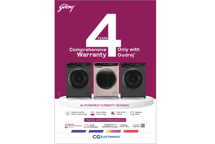 “Only with Godrej” ट्यागलाइनसहित सुरु गरिएको यो Comprehensive Warranty सुविधाले वाशिङ मेसिन श्रेणीमा Godrej लाई उपभोक्ताको विश्वासको नयाँ मापदण्डका रूपमा स्थापित गरेको छ। Godrej ले आफ्ना वाशिङ मेसिनहरूमा ४ वर्षको Comprehensive Warranty सँगै १० वर्षको मोटर वारन्टी प्रदान गर्दै मर्मत, पार्ट्स र सेवासम्बन्धी चिन्ताबाट उपभोक्तालाई दीर्घकालीन निश्चिन्तता दिएको छ।