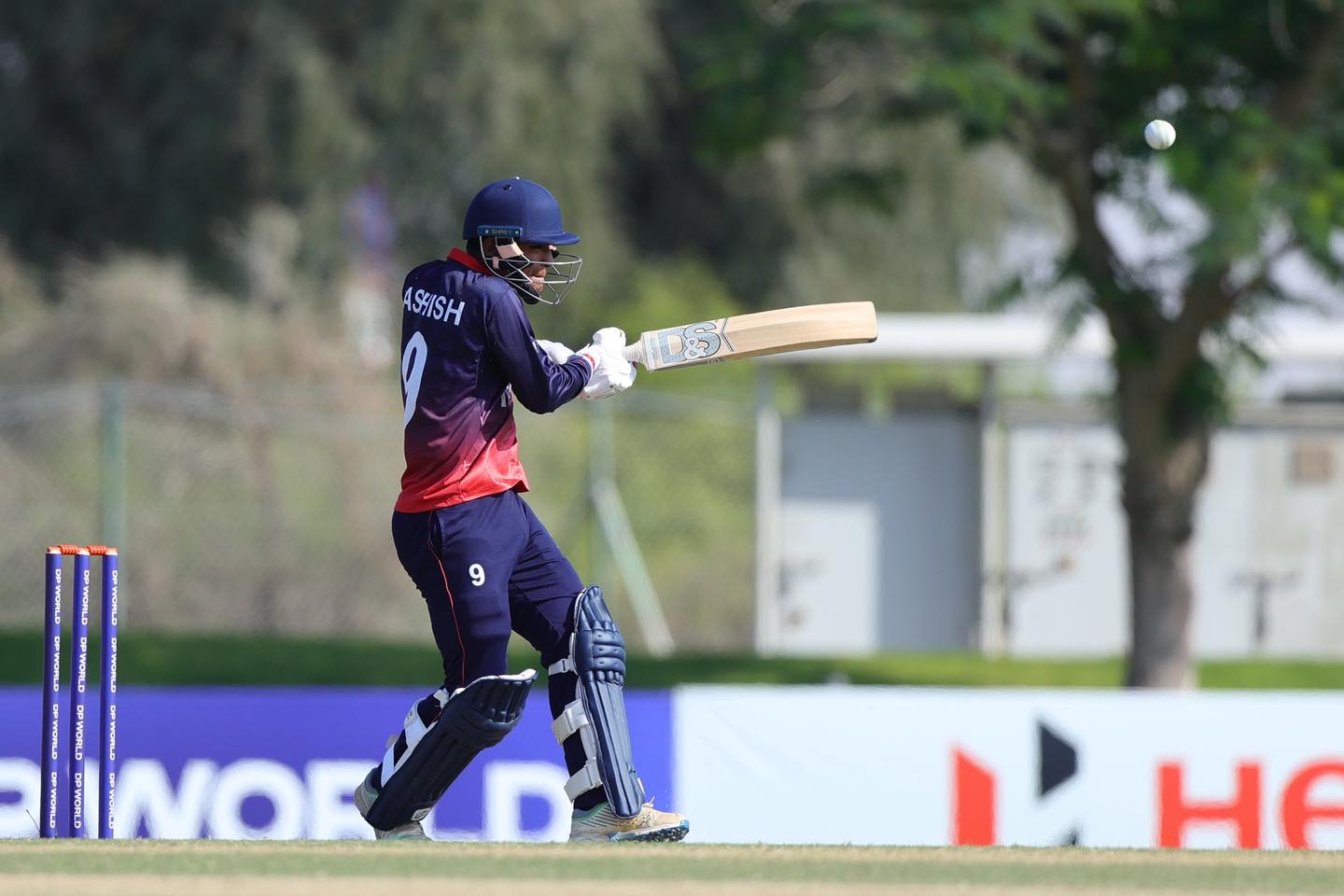 नेपालले २ रन मात्र स्कोरबोर्डमा जोड्दा पहिलो विकेटका रुपमा साहिल पटेललाई गुमाएको थियो । उनले ३ बलमा १ रन मात्रै जोडे । अर्का ओपनर निरज यादव पनि ८ रनमा आउट भए । तेस्रो नम्बरमा आएका विकेट किपर ब्याट्सम्यान आशिस लुहार ४ रन र कप्तान अशोक धामी ५ रनमा आउट भएपछि नेपाल २९ रनमा ४ विकेटको स्थितिमा खस्कियो ।