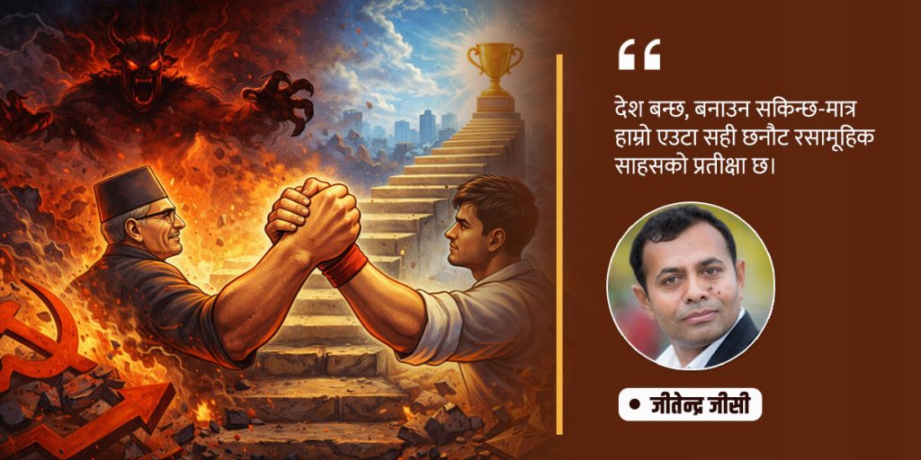 नेपाल आज ठिक यही ऐतिहासिक र पीडादायी संधिकालमा उभिएको छ। हामीले व्यवस्था बदल्यौँ, पात्र बदल्यौँ र संविधानको गाता बदल्यौँ, तर के हामीले देशको नियति बदल्न सक्यौँ? आजको सबैभन्दा ठूलो, तीतो र निर्मम सत्य यो हो कि—नेपालको राजनीति एउटा यस्तो ‘डेडलक’ (Deadlock) मा फसेको छ, जहाँ पुरानाले सत्ताको मोह त्याग्न सकिरहेका छैनन् र नयाँले त्यो अभेद्य पर्खाल भत्काएर बाटो भेट्टाउन संघर्ष गरिरहेका छन्। यो आलेख केवल आक्रोशको पुञ्ज होइन; यो त एउटा राष्ट्रको रूपमा हाम्रो सामूहिक पुनर्जागरण (Renaissance) को तार्किक र भावनात्मक खाका हो।