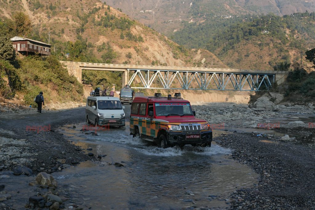 बाढीले सडक नै बगाएपछि यो वर्षदेखि खोलामै अस्थायी सडक बनाएर सवारी आवतजावत भइरहेको छ । खोलाबाट नै बनाइएको सडकबाट यात्रा गर्दा जोखिम त छ नै यात्रुलाई क्षतिग्रस्त खण्ड पार गर्न लाग्ने समय पनि बढेको छ । अझ धुलाम्य सडक खण्डमा उड्ने धुलो नियन्त्रण गर्न पानी हाल्दा सडकमा सवारी चिप्लिने र दुर्घटना हुने सम्भावना पनि बढी छ ।